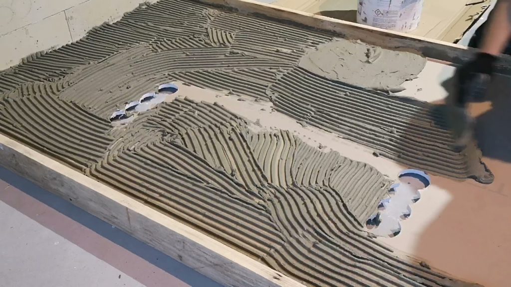 Voordat wij overgaan tot het daadwerkelijke lijmproces, besteden wij uitgebreide aandacht aan het primeren van de ondergrond. In de regio Zaanstad hebben we vaak te maken met sterk zuigende cementvloeren die het vocht direct uit de verse lijm trekken. Als dit gebeurt, droogt de lijm te snel uit en kan de chemische verharding niet volledig plaatsvinden, wat leidt tot een zeer zwakke hechting. Door het aanbrengen van de juiste primer sluiten wij de poriën van de vloer en creëren wij een optimale hechtbrug tussen de ondergrond en de mortel. Ook controleren wij continu de zogenaamde open tijd van de lijm: dit is de periode waarin de lijm nog vochtig genoeg is om een verbinding aan te gaan. Zodra er huidvorming op de lijmribbels ontstaat door tocht of warmte, moet de lijm worden verwijderd en opnieuw worden aangebracht om de veiligheid van de constructie te waarborgen.