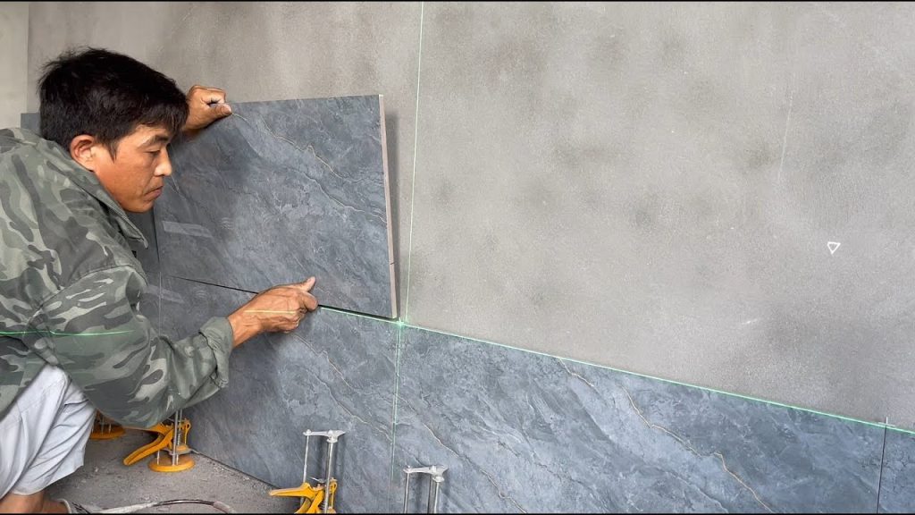 3. Het strak betegelen van de wanden met oog voor symmetrie en snijverlies.